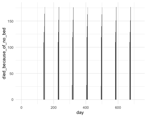 Even with our conservative estimates, we can see that during surges, the number of severely ill exceeded the number of critical care beds available. With no sharing the excess mortality of people who will die because there are not enough ICU beds is estimated to be 7,107.